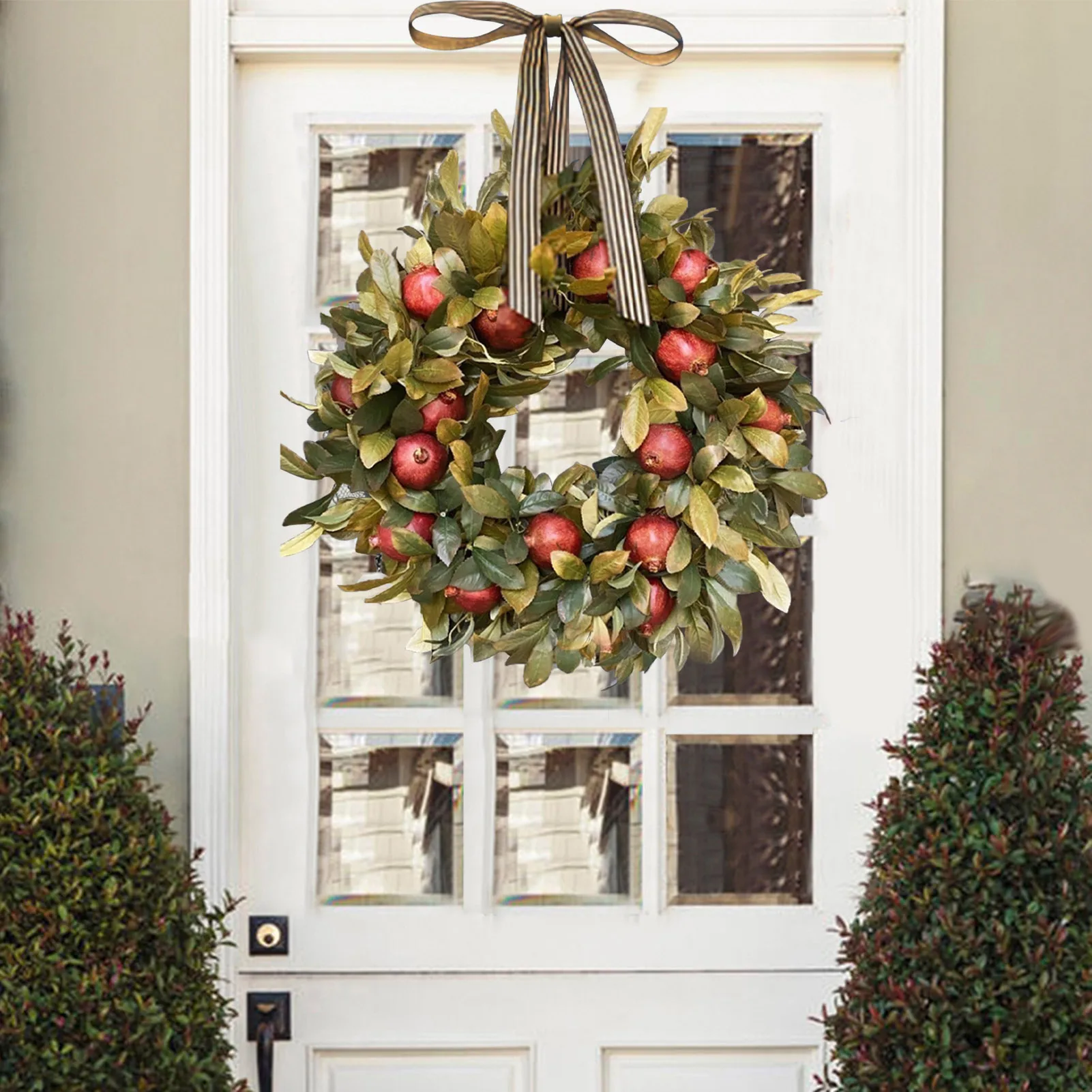 Wreaths For Front Door Simulation Green Plants Wreath Spring Front Door Wreath With Welcome Sign For Farmhouse Porch Home Wall