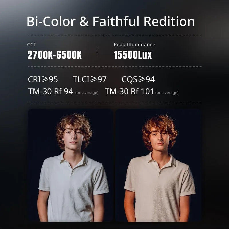 - Ultra Quiet Operation: The COB Bi-color light technology ensures a serene shooting environment, eliminating disruptive noise while providing stunning visuals.